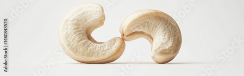 © Jamlong, Fototapeta premium Close-Up of Two Cashew Nuts on a Plain Background