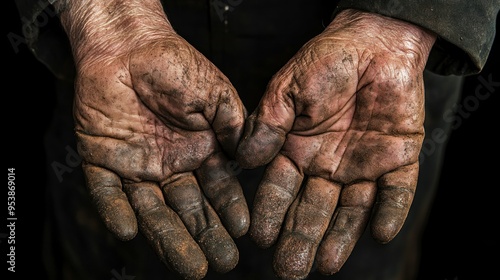 © Penatic Studio, Fototapeta premium Close-up of Two Dirty and Wrinkled Hands