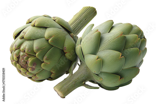 © Mr. Png, Obraz premium Close-up of two fresh green artichokes on black background, cut out