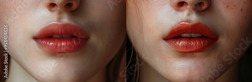 © dst, Fototapeta premium Close-up of Two Lips with Different Colors of Lipstick