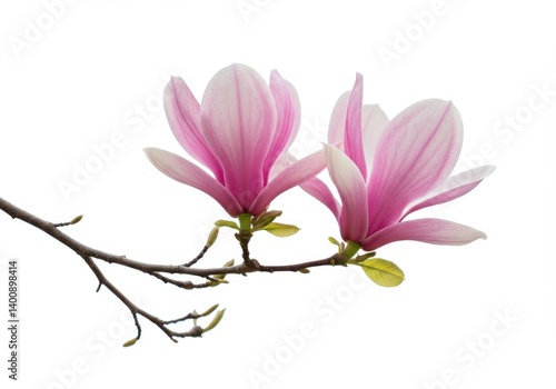 © Png stock, Obraz premium Close up of two pink magnolia flowers blooming on a branch spring isolated on white background
