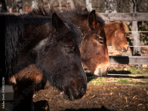 © Daniel, Fototapeta premium Close up of two ponies and a mule sleeping.