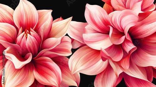 Fototapeta premium Close-up of two vibrant pink dahlias against a black background.
