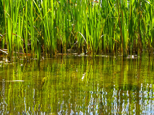 © Jan, Fototapeta premium Close up of typha plant in lake water.