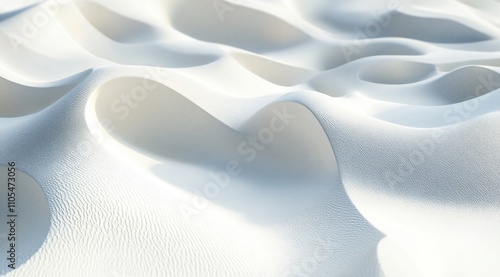 © Roey, Obraz premium Close-Up of Undulating White Sand Dunes on White Background, High-Quality 3D Rendering