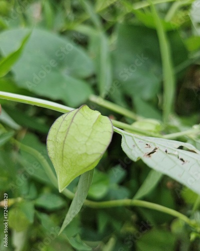 Obraz premium Close-up of unripe goldenberry growing in the garden in Mekong Delta, Vietnam.