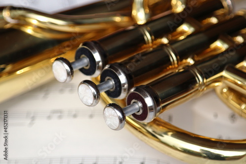 Obraz premium Close up of valves of a brass horn