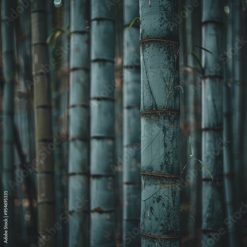 © Ilja, Obraz premium Close-Up Of Verdant Bamboo Stalks, Creating A Serene Forest Background Or Organic Texture