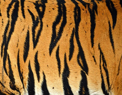 Fototapeta premium Close-up of vibrant animal pattern with black stripes on orange fur