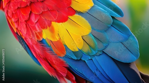© AIArtistry, Fototapeta premium Close up of vibrant feather from a Scarlet macaw