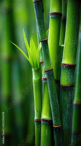 © Kika, Obraz premium Close-up of vibrant green bamboo stalks (1)