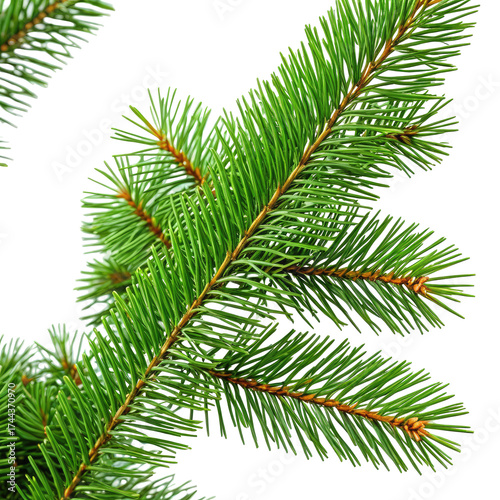 © Haer, Fototapeta premium Close-up of vibrant green fir tree branch with needles, isolated on black background