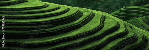 Fototapeta premium Close-up of vibrant green terraced fields - Close-up image of the patterns...