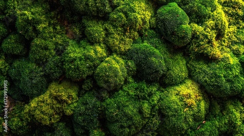 © titik, Fototapeta premium Close-up of vibrant green, textured, and naturally occurring forest moss
