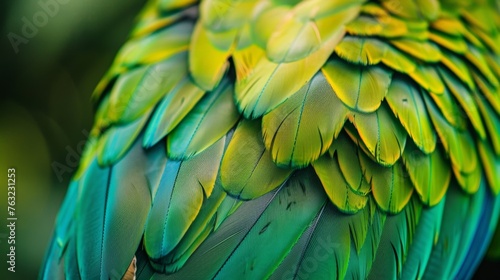 © iVGraphic, Fototapeta premium Close-up of vibrant parrot feathers