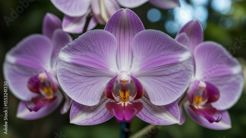 © Anna, Fototapeta premium Close-up of vibrant pink orchid blooms in natural setting