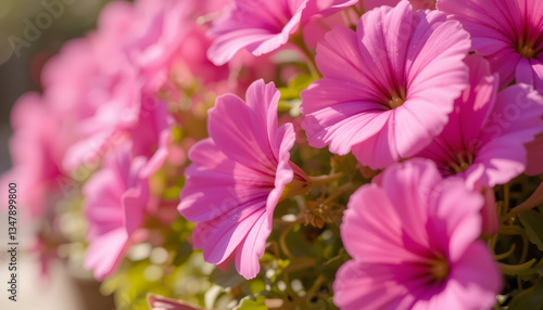 Fototapeta premium Close-up of vibrant pink petunias in sunlight