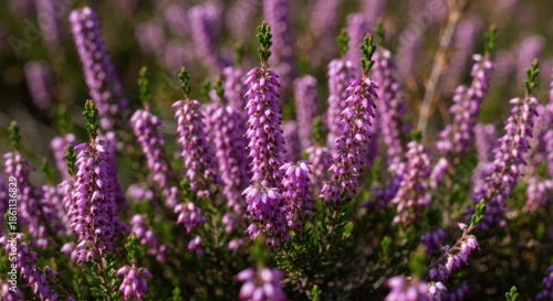 © Darminah, Obraz premium Close-up of vibrant purple heather blossoms