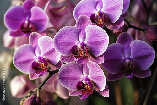 Fototapeta premium Close up of vibrant purple orchids with delicate textures.
