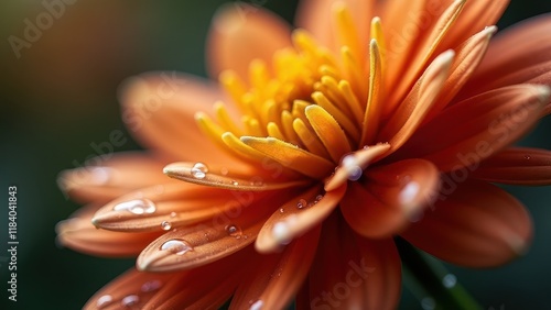 © Xavi, Fototapeta premium Close-Up of Vibrant Red Flower Petals With Dewdrops in Soft Lighting