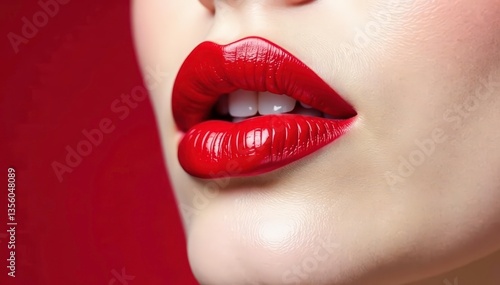 © anu, Obraz premium Close-up of vibrant red lipstick on pristine white , bright, mouth, lipstick