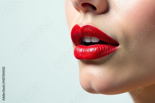 © Tanin, Obraz premium Close-up of vibrant red lipstick on pristine white , lipstick swatch, product photography, style