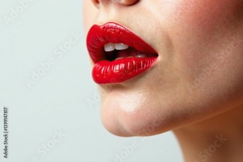 © mka, Obraz premium Close-up of vibrant red lipstick on pure white , smooth, fashion