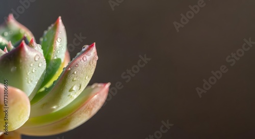 © Sugiri80, Fototapeta premium Close-up of Vibrant Succulent Plant with Fresh Water Droplets
