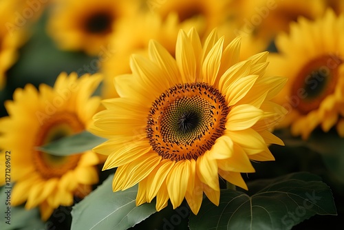 Naklejka premium Close-up of vibrant sunflowers in full bloom, showcasing their intricate...