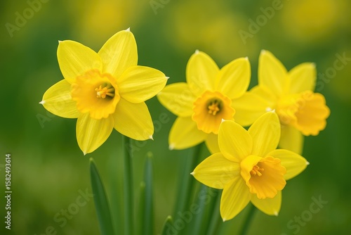 © The 2R Artificiality, Naklejka premium Close-up of vibrant yellow daffodils with a soft-focused backdrop