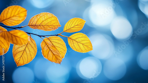 Fototapeta premium Close-up of vibrant yellow leaves on a tree branch, capturing the warmth of...