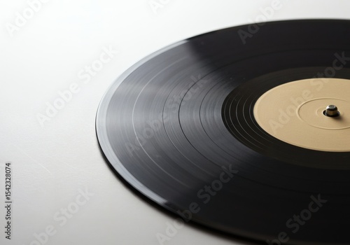 Obraz premium Close-up of Vinyl Record with Beige Label, Minimalist White Background