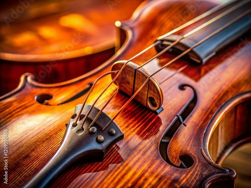 Fototapeta premium Close-up of Violin F-Hole Detail, Exquisite Wood Grain and Acoustic Instrument Craftsmanship