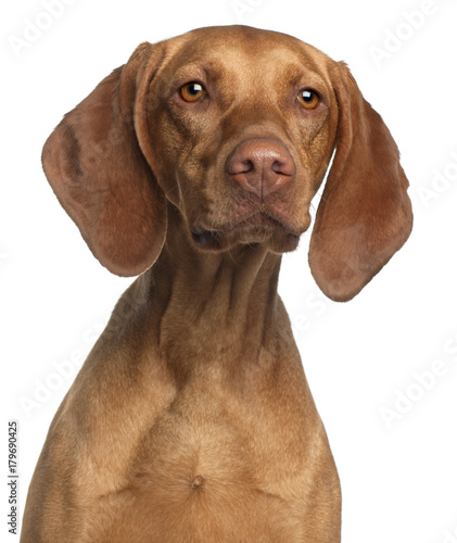 © Eric Isselée, Fototapeta premium Close-up of Vizsla, 2 years old, in front of white background