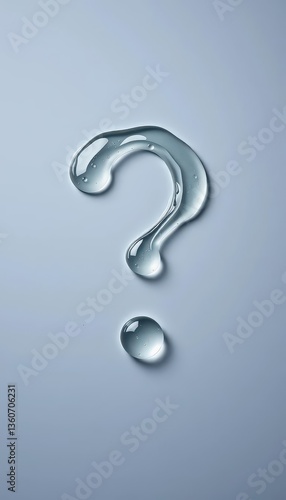 © Katherina, Fototapeta premium Close-up of water droplets forming question mark on grey background, doubt, texture, problem