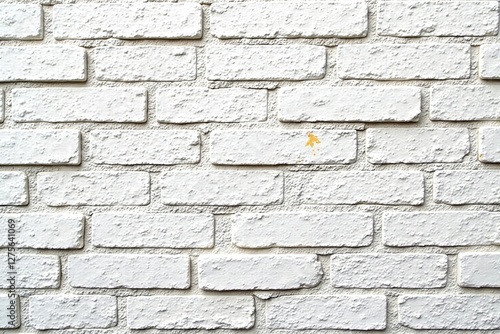 © Surangkanang, Obraz premium Close-up of weathered white brick wall with cracks and stains, Wall, White