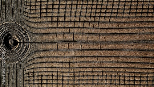 © Json, Fototapeta premium Close-up of weathered wood texture, accentuated by directional light and fine details.