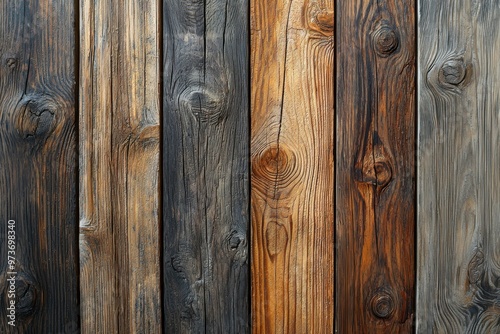 Naklejka premium Close-Up of Weathered Wooden Planks with Knots and Grain Patterns