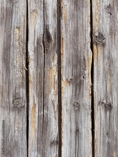 © Seno, Naklejka premium Close-up of weathered wooden planks with varying textures and colors, showcasing natural aging