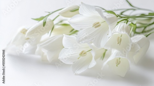 © Chatchanan, Fototapeta premium Close-up of white bell flowers on a pristine white background
