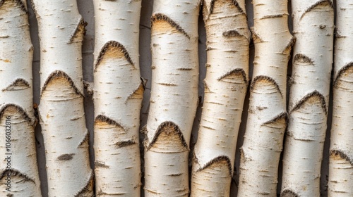 © Fomo Creative, Fototapeta premium Close-up of White Birch Tree Trunks
