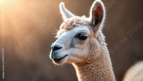 Obraz premium Close-up of White-coated Alpaca Head Against Brown Background