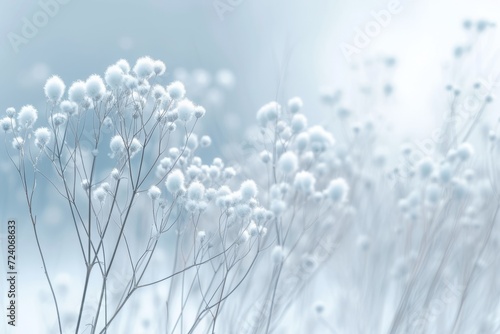 © Adobe Contributor, Fototapeta premium Close-up of white fluffy plants against a pale blue background
