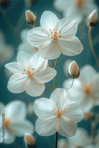 © sun, Fototapeta premium Close Up of White Laceflower Orlaya grandiflora Delicate Flowers in Nature