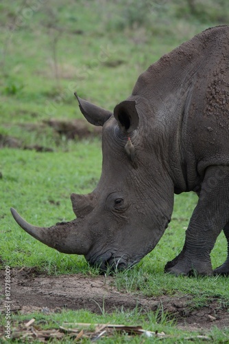 © Footage Galleria, Fototapeta premium Close-up of white rhino in the wild savanna.