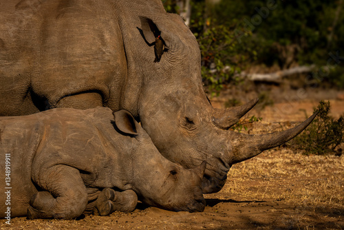 © Nick Dale, Obraz premium Close-up of white rhino standing with calf