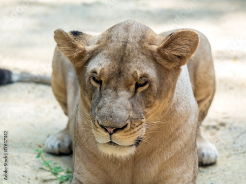 © 5415161, Naklejka premium Close-up of wild lioness looking straight