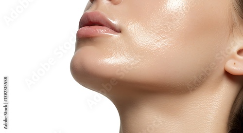 Obraz premium Close-up of Woman's Dewy Skin with Natural Glow and Fresh Look