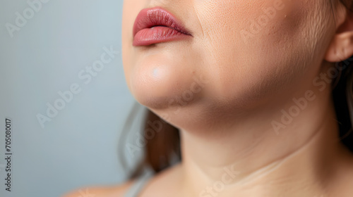 Obraz premium Close Up of Woman's Face Focusing on Chin and Lips with Natural Makeup