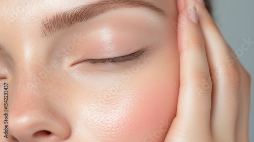 © Anna, Fototapeta premium Close-up of woman's face with natural makeup and smooth skin highlighting skincare and beauty trends